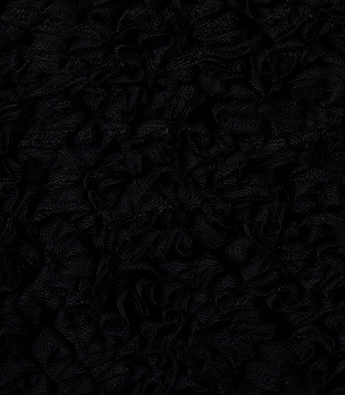 This Black Tulle Skirt showcases a refined A-line midi silhouette, featuring expertly bunched tulle arranged in an elegant pattern. The textured layers create subtle volume and dynamic visual interest, making it a standout piece for sophisticated wardrobes. Designed for versatility, it seamlessly complements both formal and contemporary looks with a delicate balance of structure and softness.