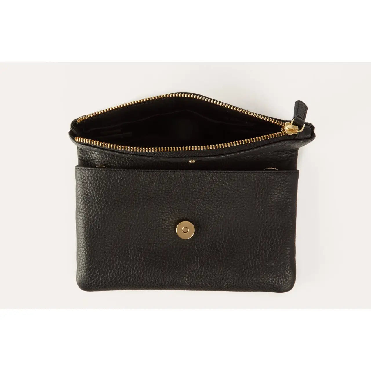 Crafted from genuine leather, this flap clutch offers durability with a refined texture. It features a secure magnetic closure and a practical design including one zipper pocket and an internal sleeve pocket to organize essentials. The removable, adjustable shoulder strap adds versatility, allowing you to switch between a chic clutch and a convenient crossbody purse. Ideal for those who value both style and function.