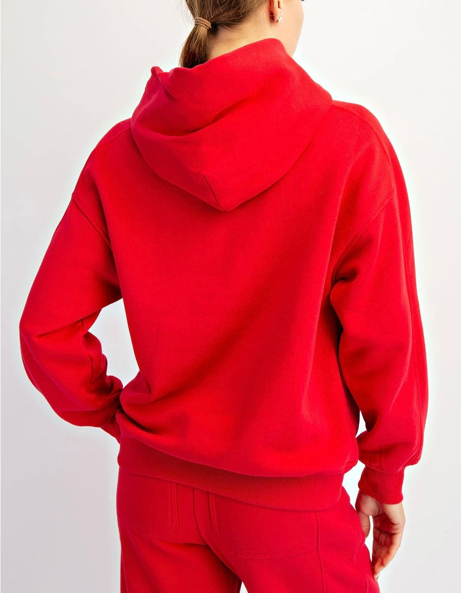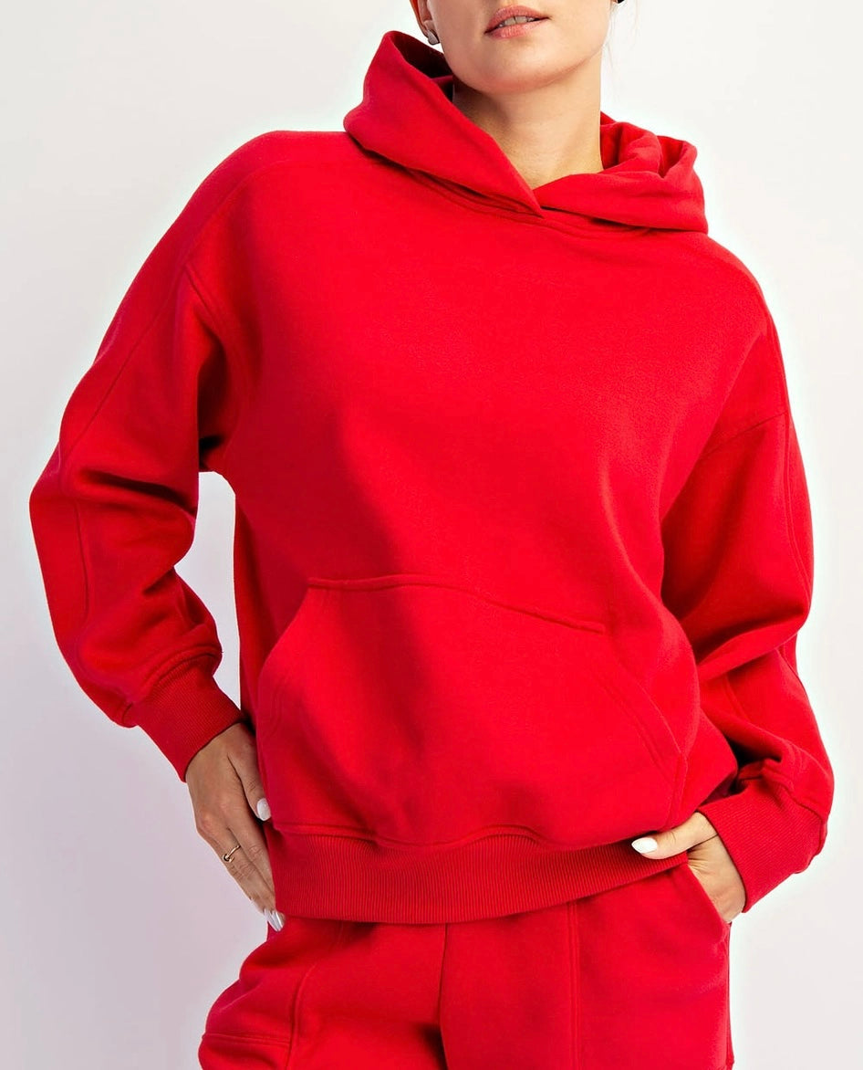 Crafted from premium heavyweight fleece, this oversized hooded sweatshirt delivers exceptional comfort and durability. The relaxed silhouette provides generous room for layering while maintaining a contemporary aesthetic. Features a spacious kangaroo pocket and reinforced seams engineered for longevity. The rich true red colorway offers versatile styling across casual and elevated wardrobes. Ideal for those seeking quality construction and timeless appeal in an elevated basics piece.